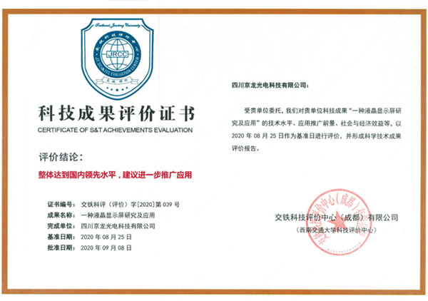 一種液晶顯示屏及應(yīng)用國內領先科(kē)技(jì)成果評價