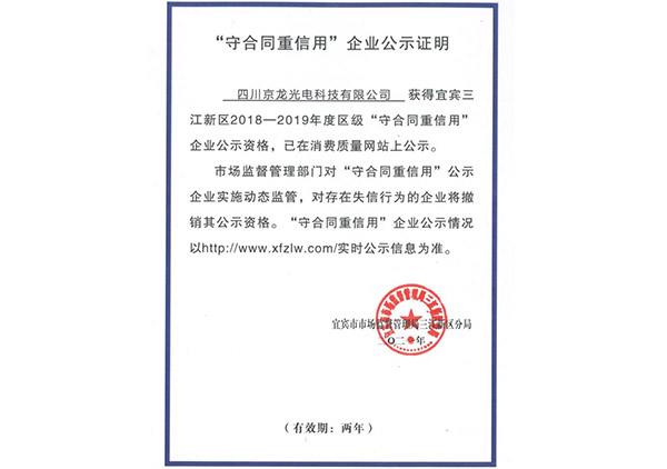 宜賓三(sān)江新區2018-2019年度區級“守合(hé)同重信用”企業公示證明