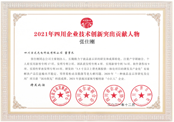 2021年(nián)四川企(qǐ)業技術(shù)創新突(tū)出貢(gòng)獻人物