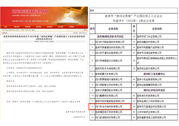 2023年度宜賓市“畝(mǔ)均論英雄”產業園(yuán)區規上工(gōng)業企業評價A類企業