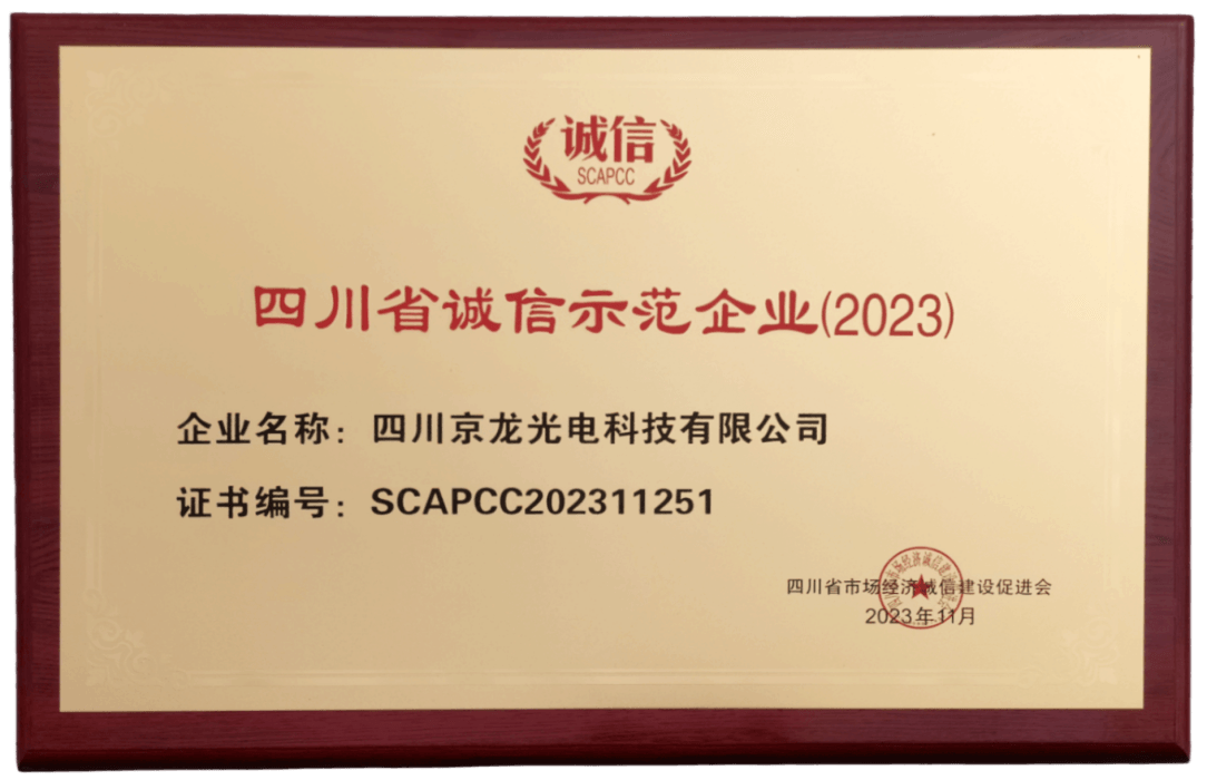 喜訊 | LUTUBE视频在线观看光電榮獲2023年“四川省誠信示範企業”榮譽稱號